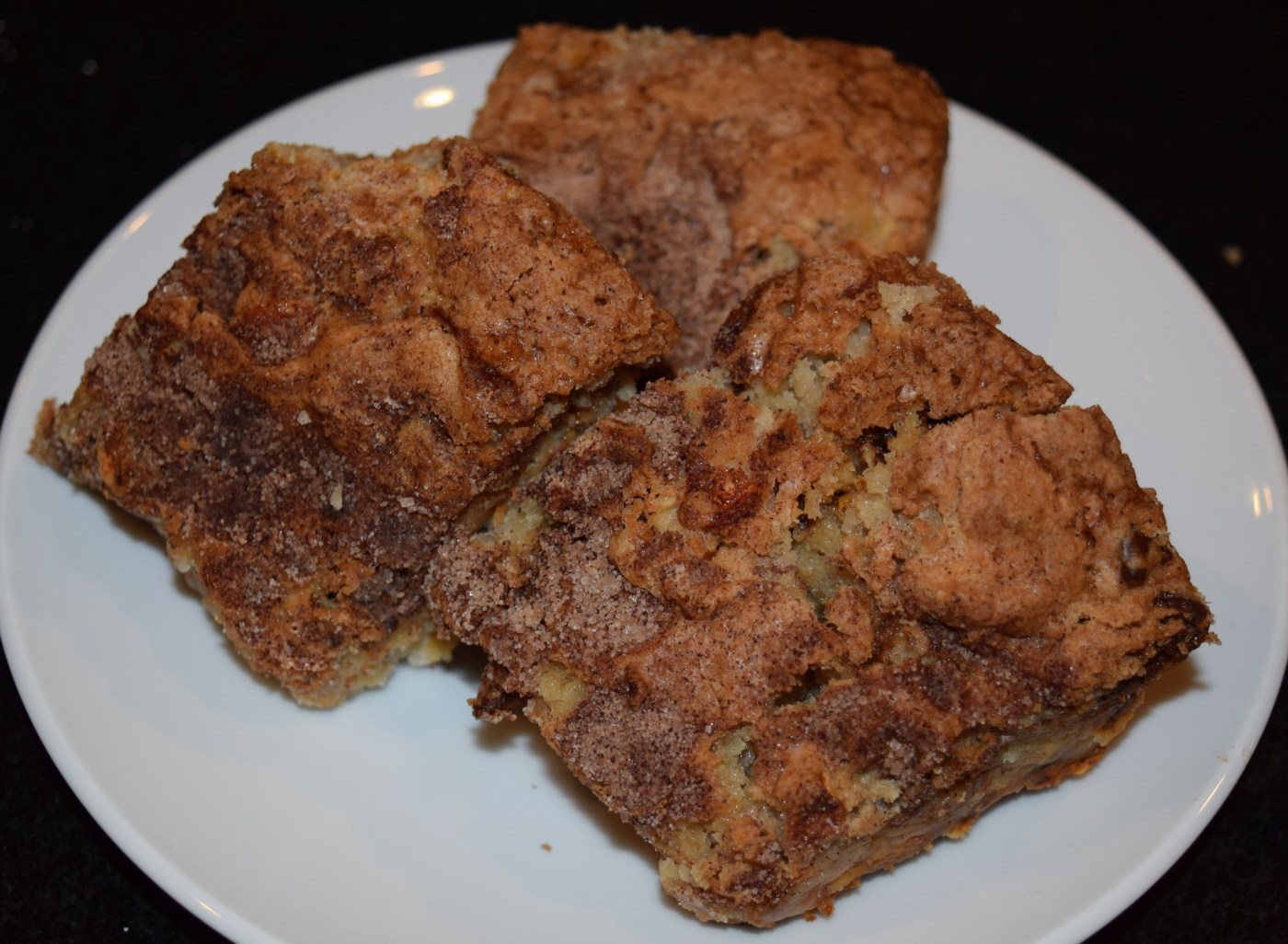 - Add eggs, vanilla, cinnamon, salt, and baking powder and mix
